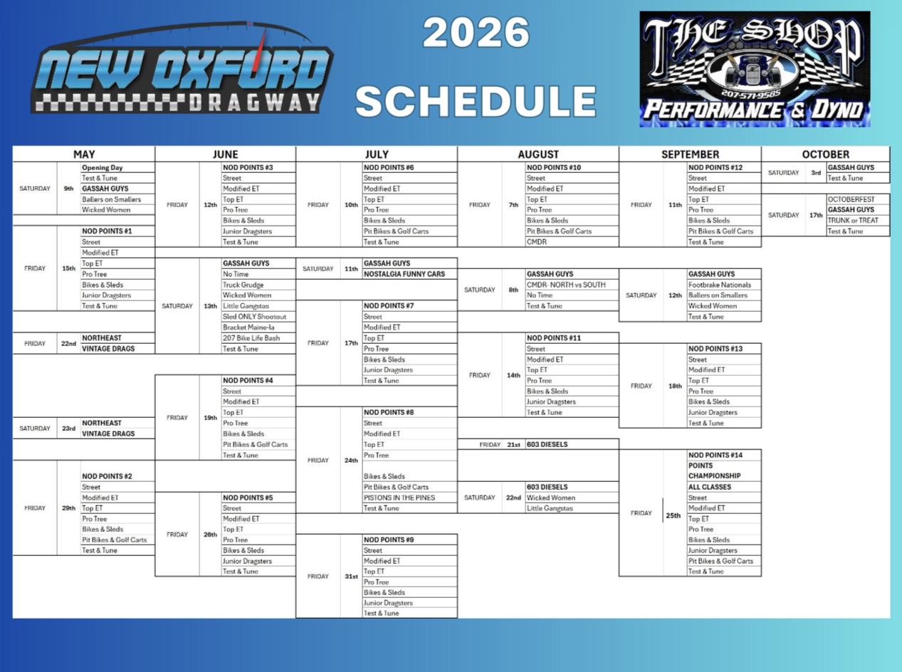 Join us for food, music and thrilling racing events. Take a look at our upcoming events to see what's new at New Oxford Dragway.